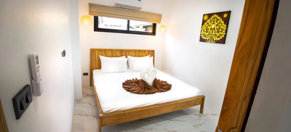 Concrete beds with teak paneling: They give bedrooms a modern and elegant look. As an additional option, customized teak beds can be chosen.