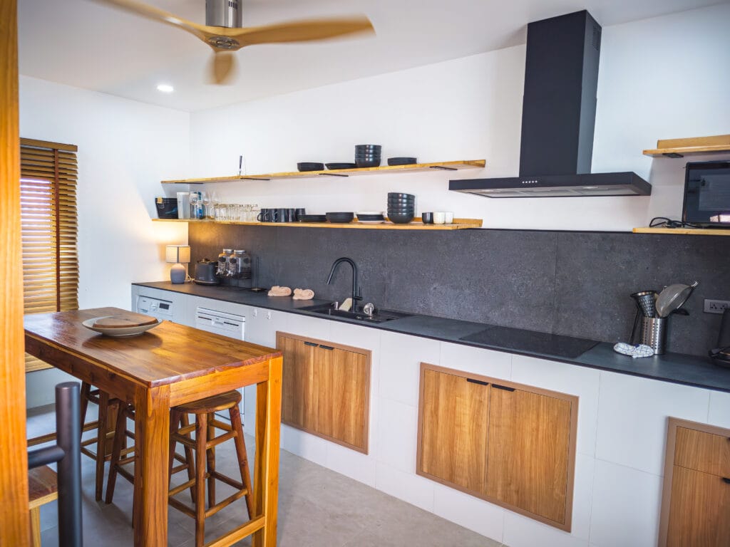 - Fully equipped kitchen with quality cabinets, induction hob and extractor hood.
