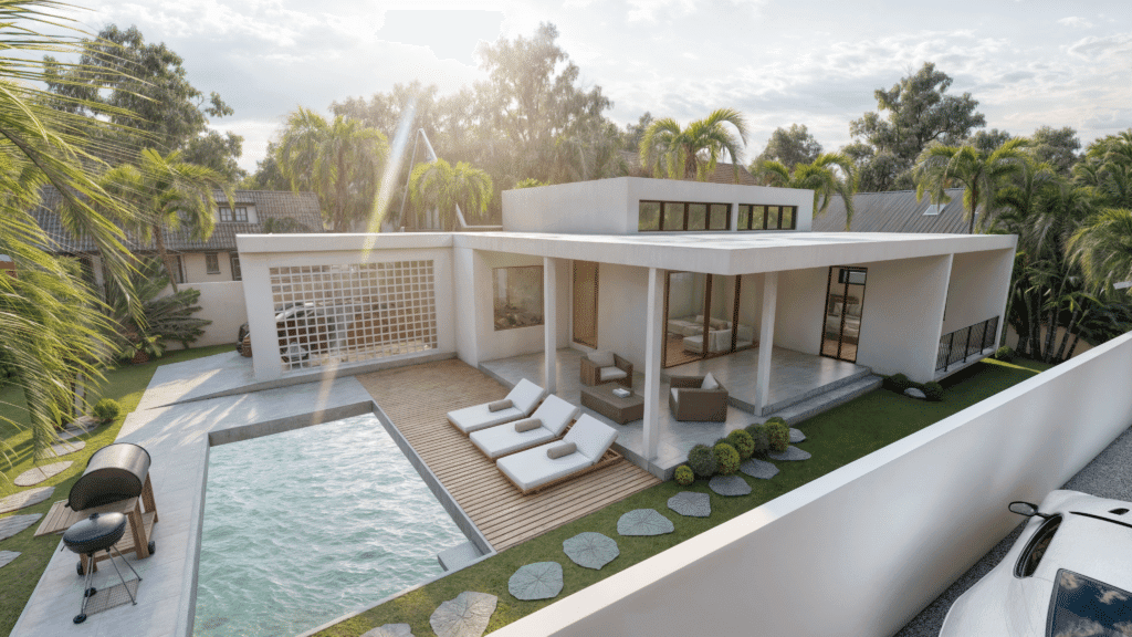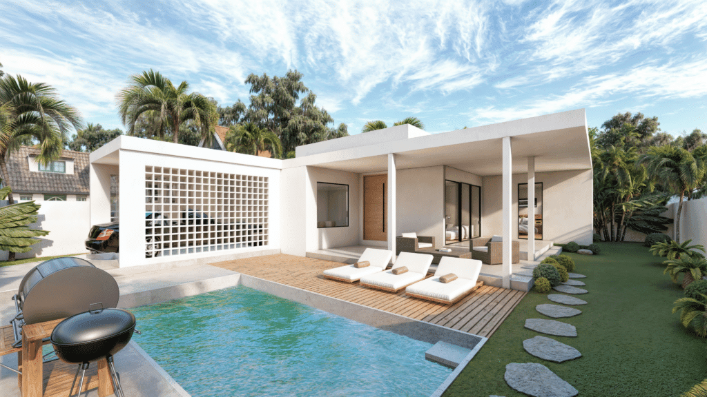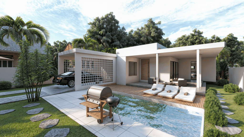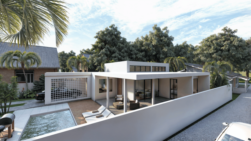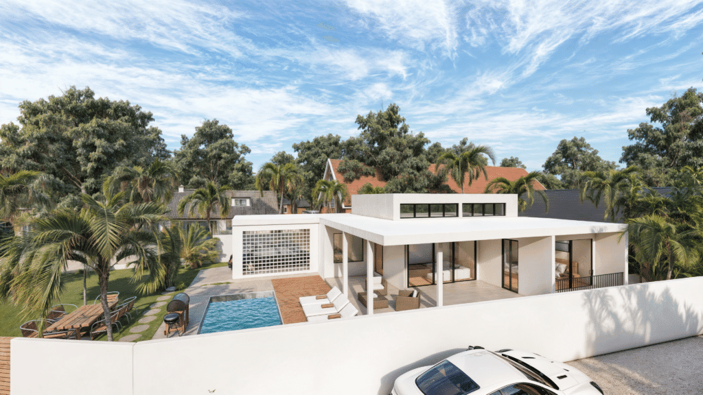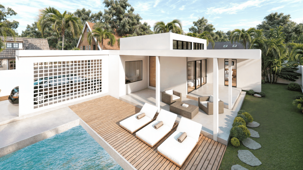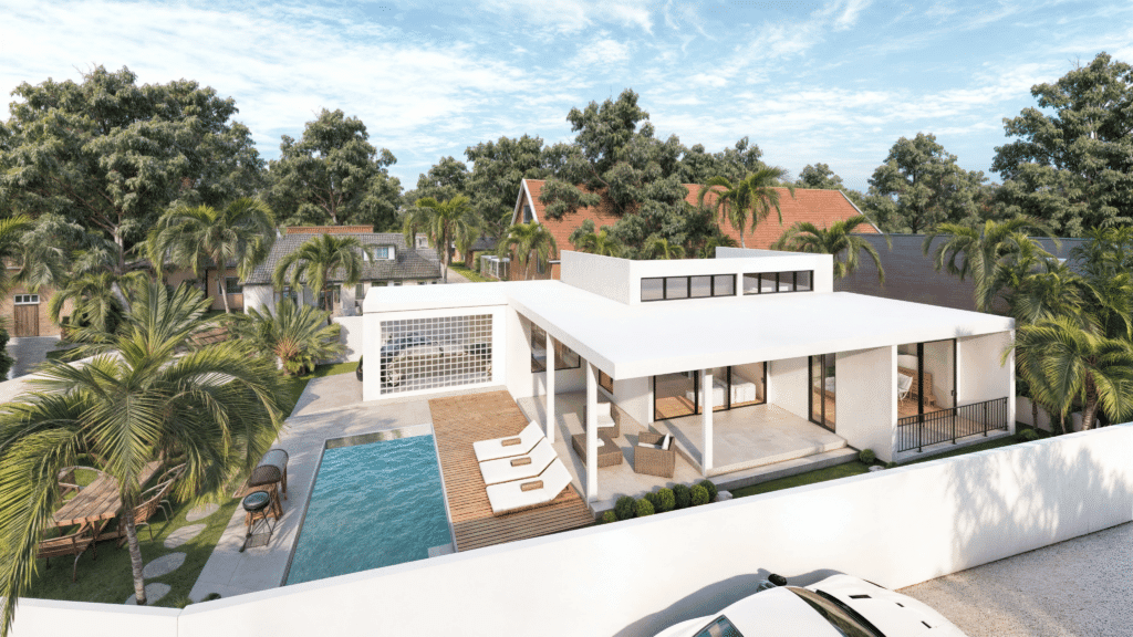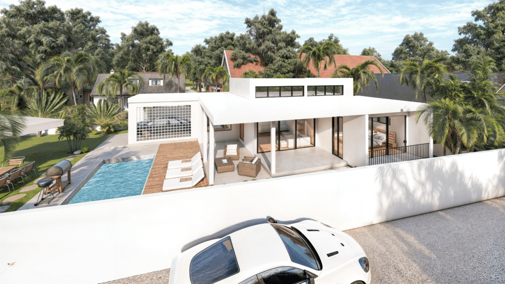Find a modern home in paradise in this beautifully designed 3 bedroom, 3 bathroom villa, strategically located just 350 metres from the nearest beach. Built area of 145 sqm on a spacious plot of 486 sqm. Priced at 9.5 million Baht for a partially furnished villa to be completed within 8 months of the first deposit.