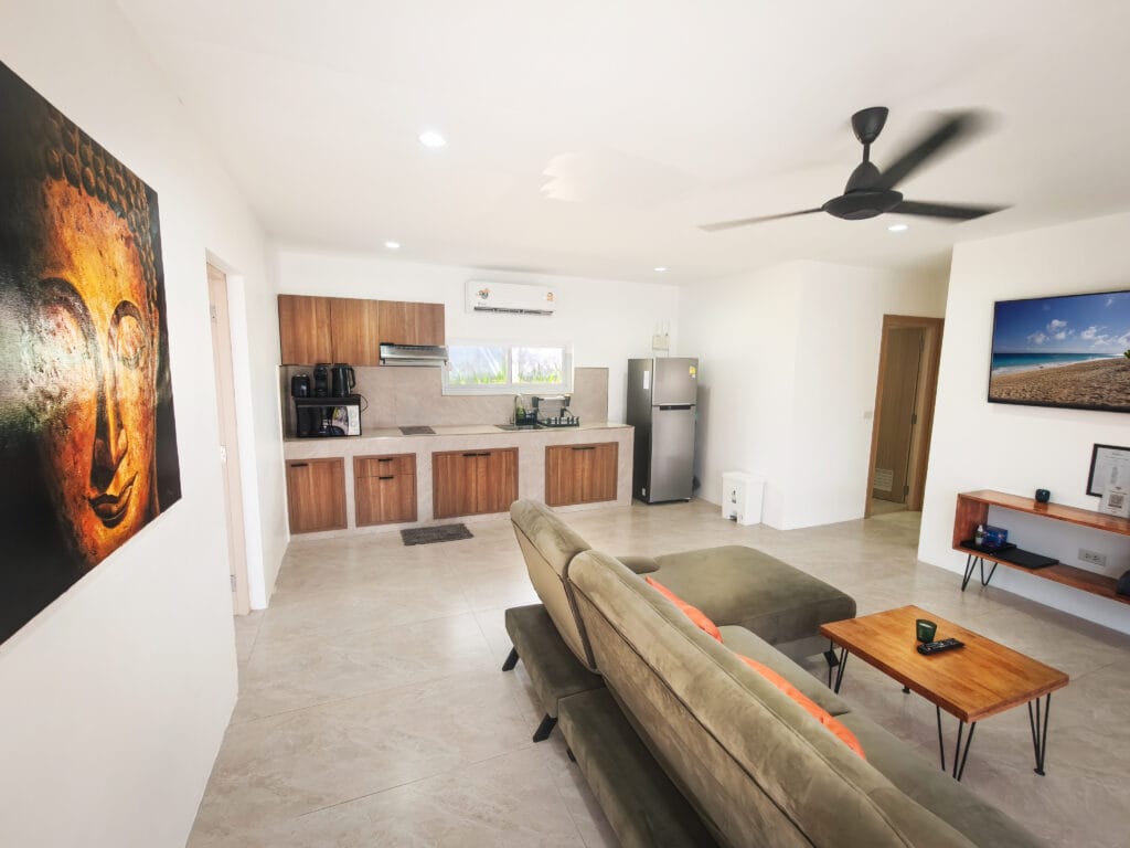 It is newly equipped with quality furniture, renovated modern kitchen with all appliances and spacious living room. The villa has 3 bedrooms with beautiful views of the Lamai mountains. The villa is in a perfect location that is easy to get to without steep inclines. All amenities are within easy reach such as: international school, markets, restaurants and supermarkets.