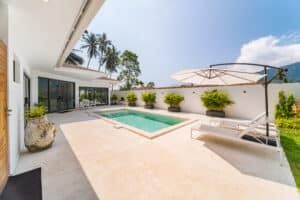 Prostorné bydlení: Vily se 3 ložnicemi a 4 koupelnami pro maximální pohodlí. Rodinné stolování hravě: Plně vybavená kuchyně pro skutečný pocit domova. Odpočiňte si a relaxujte: Soukromá sala, tradiční thajský pavilon, pro chvíle klidu. Vodní hrátky: Váš vlastní bazén pro nekonečnou zábavu. Zhotoveno s péčí: Vysoce kvalitní materiály pro nadčasovou eleganci a trvalou hodnotu. Zaručená bezpečnost: Zkušený stavitel dohlíží na to, aby každý detail byl vypracován k dokonalosti.
