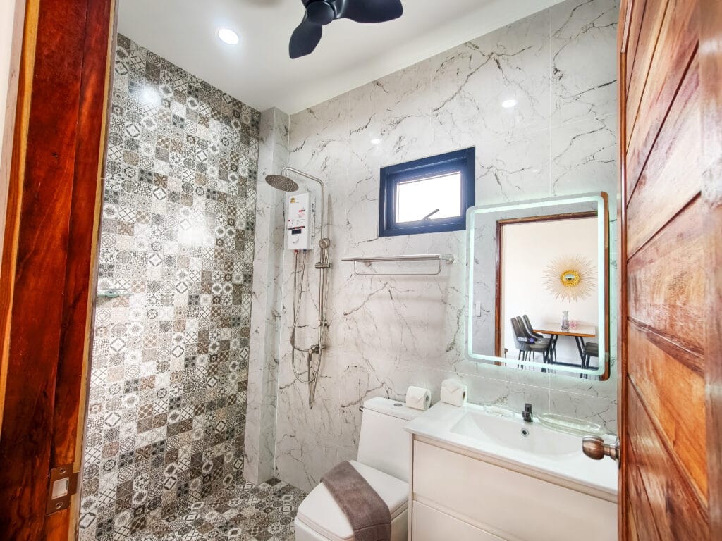 Moderní a komfortní: Vila má rozlohu 91 m2 a nachází se na pozemku o rozloze 255 m2. Dispozice zahrnuje 3 ložnice, 2 koupelny, samostatnou prádelnu a sklad, obývací pokoj s kuchyní a bazén 6×3 m (s pískovým filtrem a solným systémem). Vybavení domu zahrnuje kompletně vybavené koupelny, kvalitní kuchyňský kout, klimatizaci v každém pokoji, větráky na toaletách a na terase, smart TV, šatní skříně, pohovku a stůl s židlemi, pračku a spotřebiče v kuchyni.