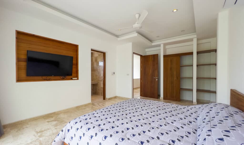 zhruba za 5mil bath včetně střechy, kompletních rozvodů, podlah apod. Jsou zde použity pouze kvalitní a luxusní prvky a to jak stavební tak interiérové. Vila Vám nabídne prostorných 260m2 obytné plochy, kde nebude nikdo postrádat své soukromí. Při zaparkování u vily na vašem soukromém parkovacím stání, projdete bránou na zahradu s bazénem obehnaným kamennou zdí s vodopádem, na který Vás pohled snad nikdy neomrzí. Při vstupu do vily budete přicházet po osvětlených schodech a vstoupíte do obývacího pokoje s kuchyní, toaletou a jedním obývacím pokojem se soukromou koupelnou. Při vystoupání po schodech do patra, Vás ihned uchvátí pohled na nasvícenou kamenou zeď a budete se tedy nacházet na chodbě, odkud můžete vstoupit do vaší master ložnice s vlastní koupelnou a terasou, kde při probuzení můžete rozjímat krásným výhledem. Ostatní poté mohou trávit čas v dalších dvou ložnicích s druhou terasou a společnou koupelnou. Vila se tedy pyšní svými 4 ložnicemi, obývacím pokojem s luxusní vybavenou kuchyní, 3 koupelnami ( z toho jedna s pračkou ), venkovním bazénem a mnoho dalším. Vila je kompletně vybavena kvalitním vybavením, klimatizací a luxusními dřevěnými prvky.