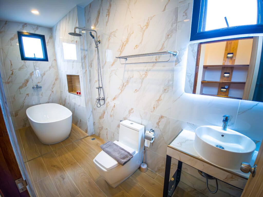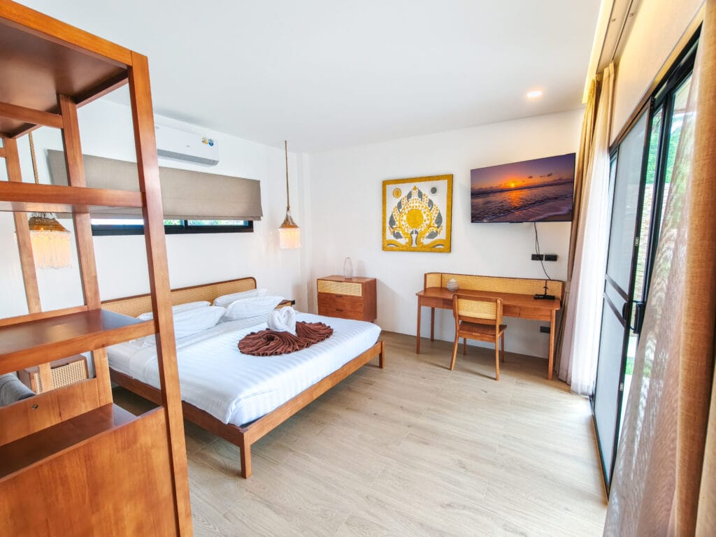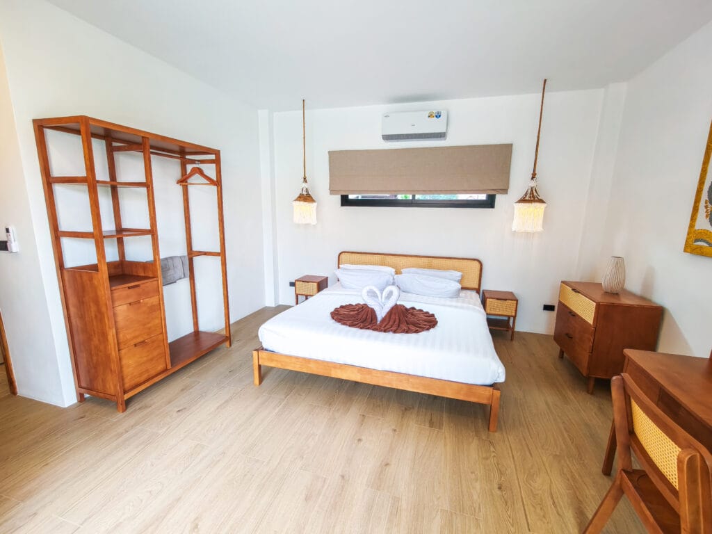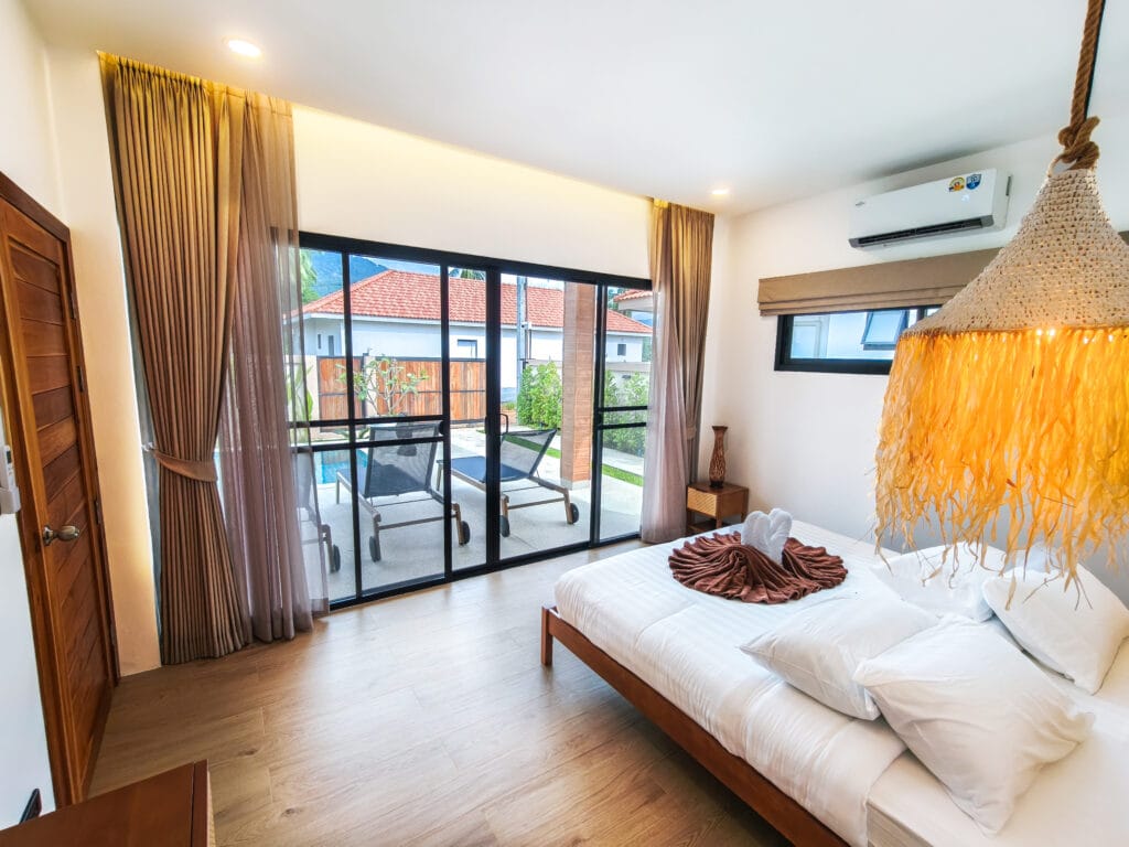 Vily dokonale kombinují moderní pohodlí s kouzlem ostrova. Každá rezidence je plně vybavena vysoce kvalitními zařízeními, včetně stylové kuchyně s varnou deskou, digestoří a dostatkem úložného prostoru. Odpočiňte si v pohodlném obývacím pokoji se stropním ventilátorem a kvalitní sedací soupravou. Posuvné teakové dveře v obývacím pokoji a ložnicích stírají hranice mezi vnitřním a venkovním prostorem a umožňují průchod tropického vánku.