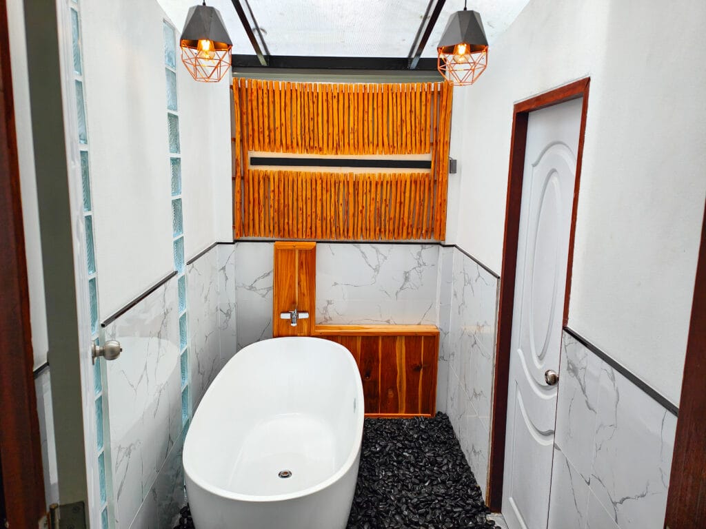 Každá vila má tři koupelny, včetně en-suite a stylové koupelny s vanou pod prosklenou střechou. Elektrická zrcadla dodávají luxusní vzhled. Vily disponují plně vybavenou kuchyní s kvalitní linkou s výběrovými skříňkami, obývacím pokojem se stropním ventilátorem a terasou s povrchem ze sandwashe (marmolitu) vedoucí k bazénu.