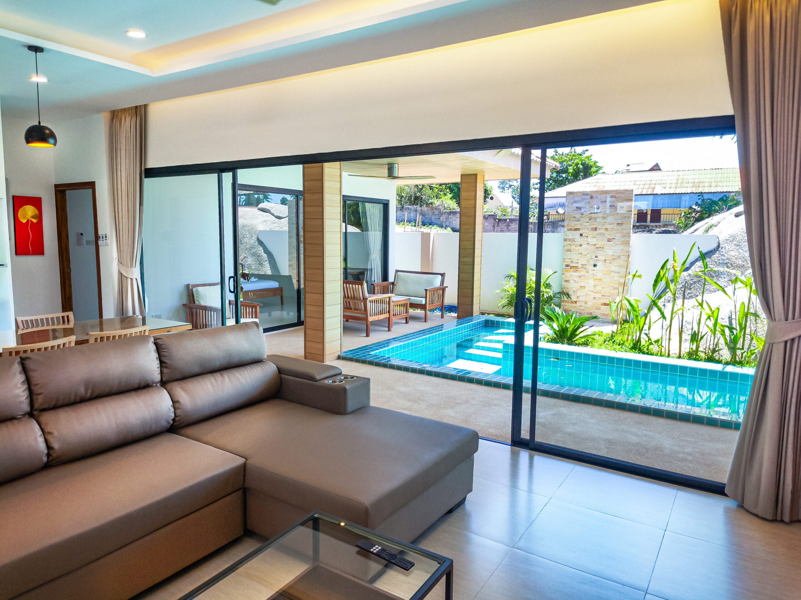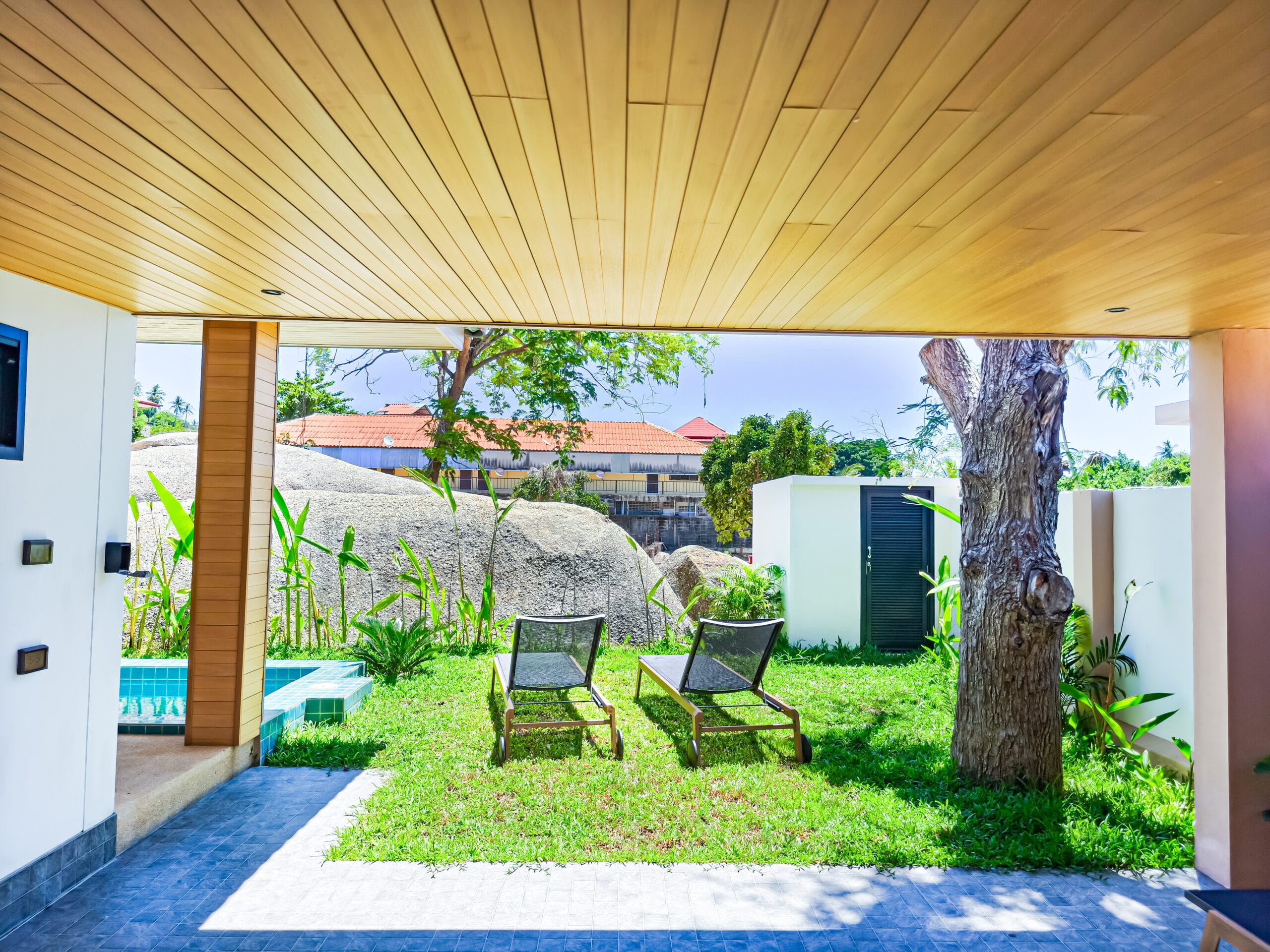 Moderní vily jsou umístěny jen 250 metrů od pláže Lamai se třemi ložnicemi a třemi koupelnami (dvě en-suite, jedna s vanou). Vzdušný obývací pokoj s moderní TV stěnou s LED podsvícením a LED podsvíceným recesním stropem (tray ceiling) doplňuje kvalitní dřevěný nábytek a teakové postele. Plně vybavená kuchyň s vyzděnou linkou, výběrovými skříňkami a spotřebiči zajišťuje komfort. Kvalitní hliníkové posuvné dveře a stropní ventilátory na dálkové ovládání uvnitř i venku zvyšují pohodlí. Ložnice jsou vybaveny elegantním nábytkem, závěsnými světly a LED podsvíceným prostorem pro závěsy. Parkovací stání ze sandwashe (marmolitu) s vzdušnou střešní plochou bez sloupů umožňuje pohodlný přístup „suchou nohou“ a dodává prostornost. Velkorysá terasa s přímým vstupem do bazénu (6×3 m) a zatravněná zahrada s venkovní sprchou, kamenným obkladem a osvětlením vytváří tropickou atmosféru. Kombinace prostoru, luxusních prvků a blízkosti moře činí vily neodolatelnými pro nájemce.