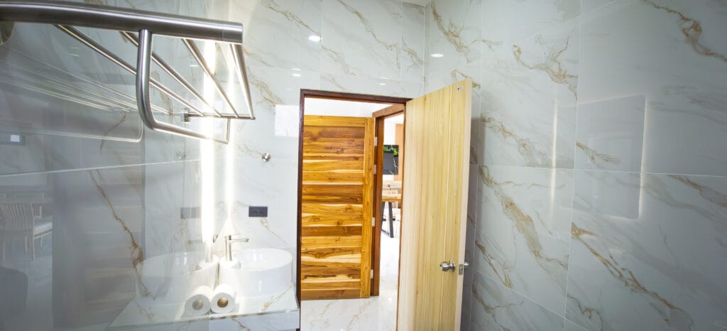Moderní vily jsou umístěny jen 250 metrů od pláže Lipa Noi se třemi ložnicemi a třemi koupelnami (dvě en-suite, jedna s vanou). Vzdušný obývací pokoj s moderní TV stěnou s LED podsvícením a LED podsvíceným recesním stropem (tray ceiling) doplňuje kvalitní dřevěný nábytek a teakové postele. Plně vybavená kuchyň s vyzděnou linkou, výběrovými skříňkami a spotřebiči zajišťuje komfort. Kvalitní hliníkové posuvné dveře a stropní ventilátory na dálkové ovládání uvnitř i venku zvyšují pohodlí. Ložnice jsou vybaveny elegantním nábytkem, závěsnými světly a LED podsvíceným prostorem pro závěsy. Parkovací stání ze sandwashe (marmolitu) s vzdušnou střešní plochou bez sloupů umožňuje pohodlný přístup „suchou nohou“ a dodává prostornost. Velkorysá terasa s přímým vstupem do bazénu (6×3 m) a zatravněná zahrada s venkovní sprchou, kamenným obkladem a osvětlením vytváří tropickou atmosféru. Kombinace prostoru, luxusních prvků a blízkosti moře činí vily neodolatelnými pro nájemce.