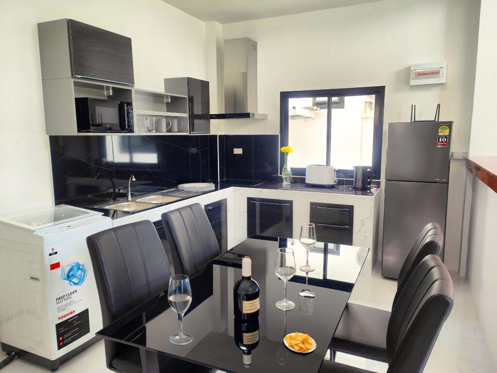 Tři sluncem zalité apartmánové vily s privátním bazénem (6×3 m), jen 1,7 km od pláže Taling Ngam. Každá vila nabízí dvě ložnice, jedna s přímým vstupem k bazénu. Součástí je plně vybavená kuchyň s kvalitní vyzděnou linkou s výběrovými skříňkami, prostorný obývací pokoj s vysokým stropem a venkovní terasa s povrchem ze sandwashe (marmolitu). Kuchyň a koupelnu propojuje barový pult s dřevěným obkladem a LED podsvícením. Obývací pokoj zdobí moderní TV stěna s LED podsvícenou deskou a úložným prostorem. Zahrada s trávníkem, stromy a venkovní sprchou v dřevěném masivu s kamennou základnou dotváří harmonii. Klasické stavební postupy a moderní prvky vytvářejí útulný domov.