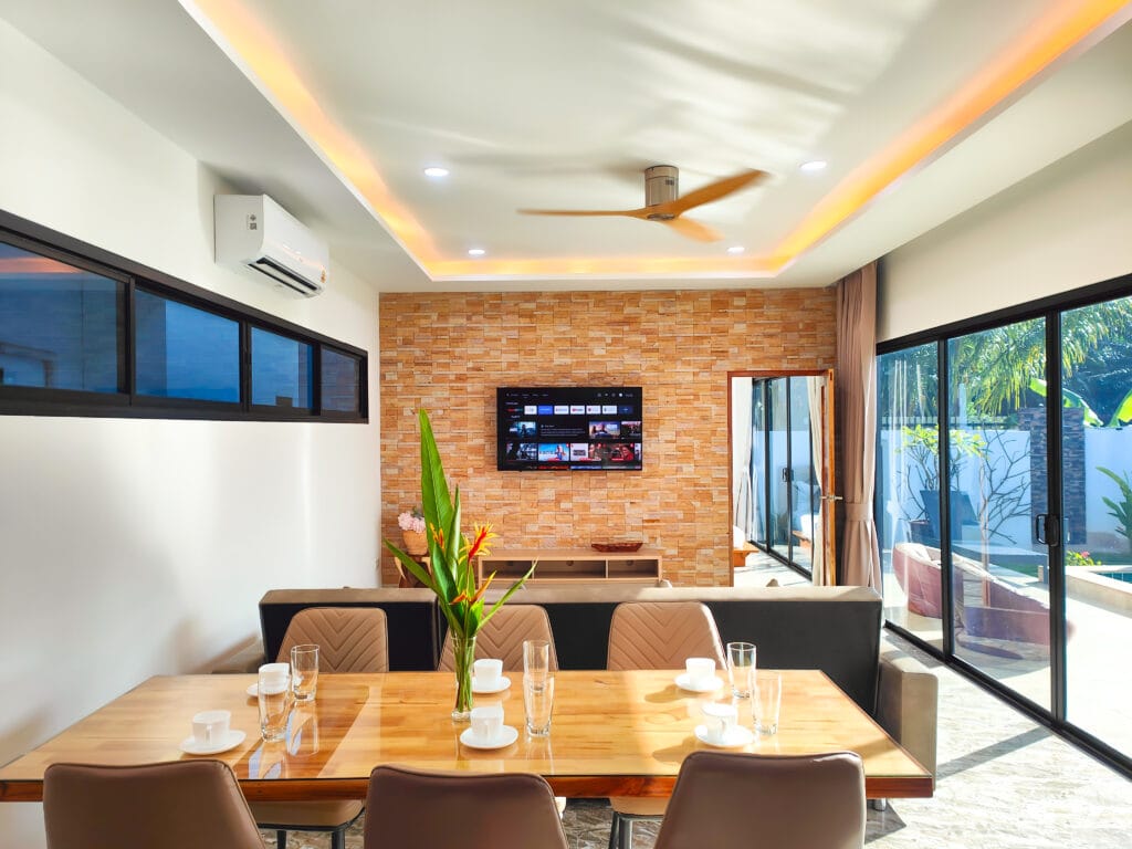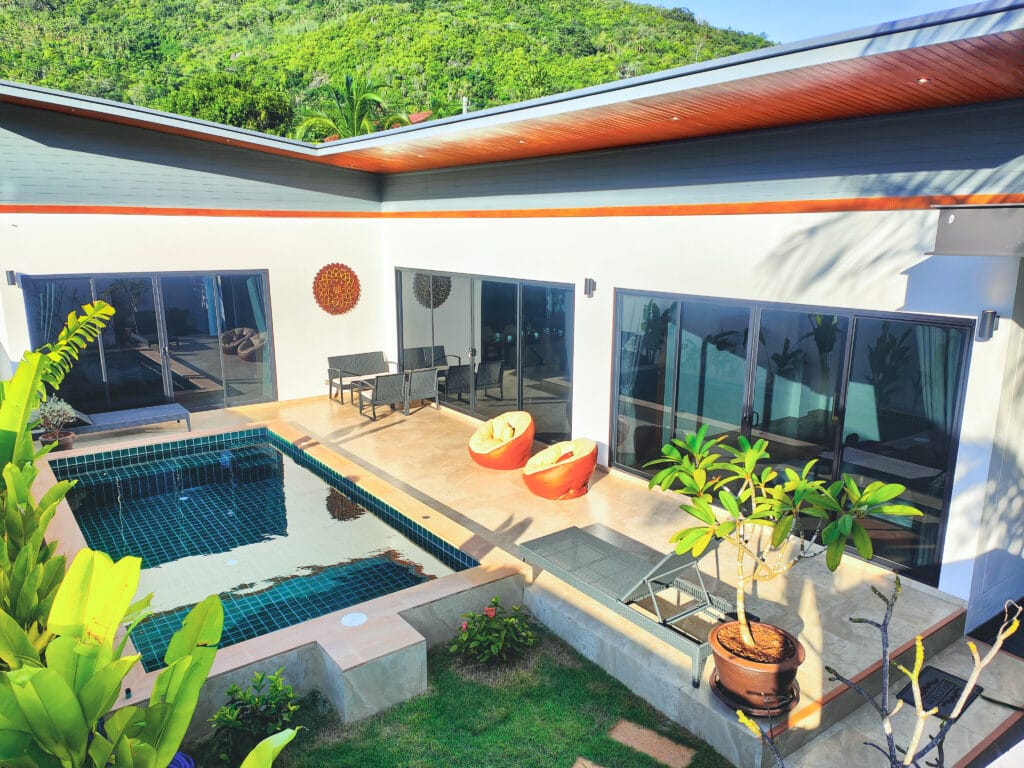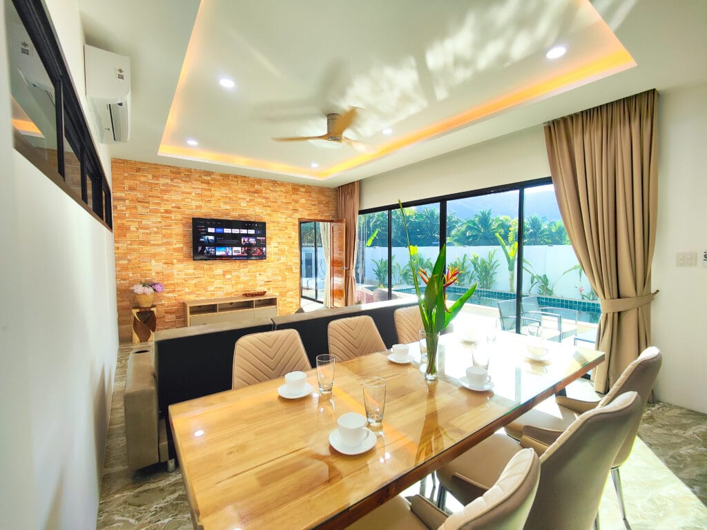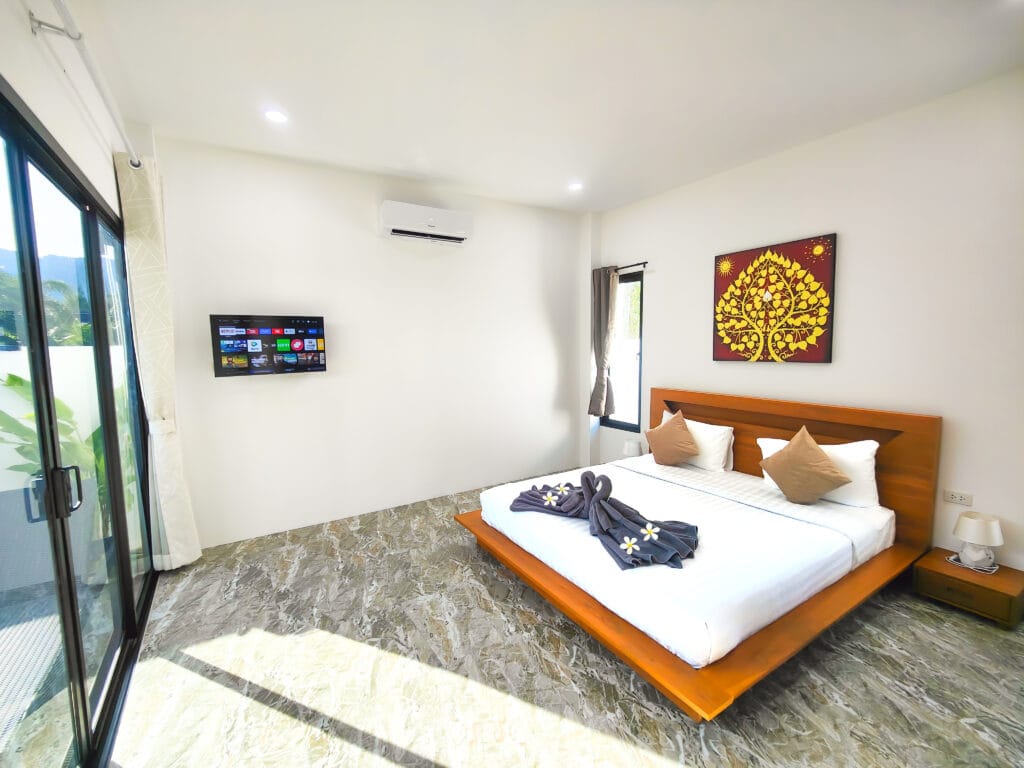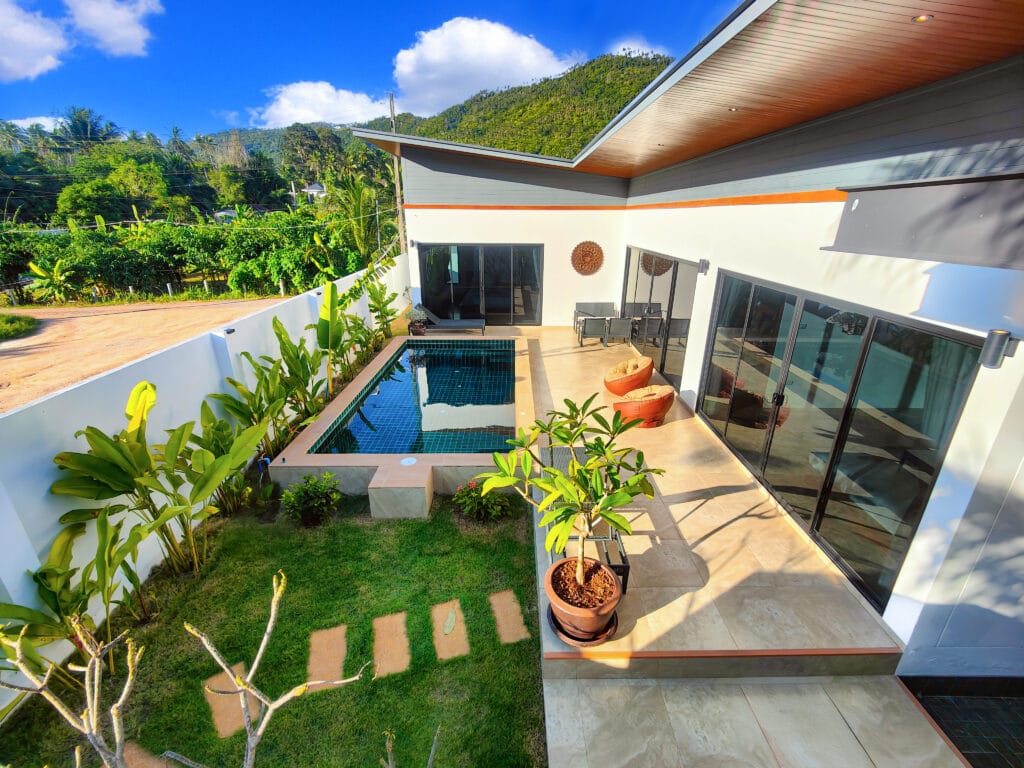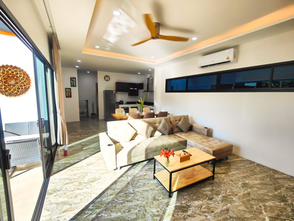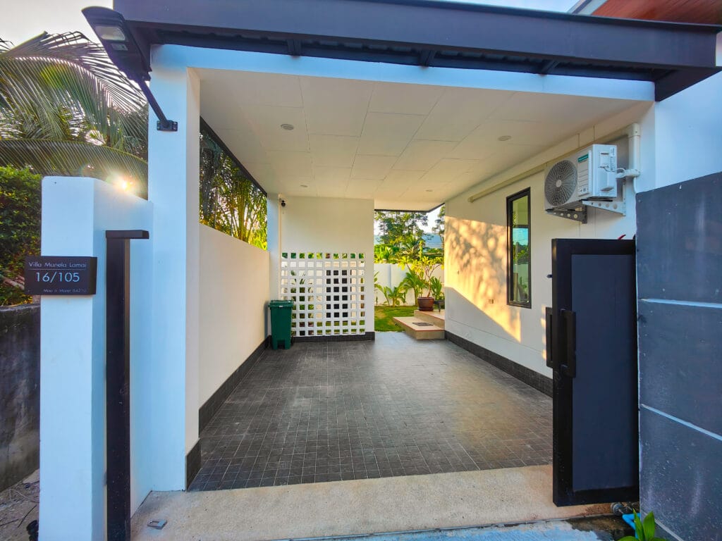 Moderní vila v srdci Lamai se dvěma ložnicemi a třemi koupelnami (dvě en-suite, jedna pro hosty). Vzdušný obývací pokoj s TV stěnou obloženou kamenným obkladem a LED podsvíceným recesním stropem (tray ceiling) doplňuje kvalitní dřevěný nábytek a teakové postele. Vila nabízí plně vybavenou kuchyň s vyzděnou linkou, výběrovými skříňkami a prostorem pro pračku, oddělenou od hlavní ložnice posuvnými teakovými dveřmi. Kvalitní hliníkové posuvné dveře a stropní ventilátory na dálkové ovládání zvyšují komfort. Parkovací stání propojené s domem zajišťuje pohodlný přístup „suchou nohou“. Zahrada s venkovní sprchou, kamenným obkladem a prostornou terasou s bazénem 6×3 metrů v kombinaci s moderním designem a dřevěnými prvky vytváří luxusní a pohodlnou atmosféru. Díky kvalitnímu provedení s nádecherm luxusu a atraktivní lokalitě je tato nemovitost vysoce lukrativní.