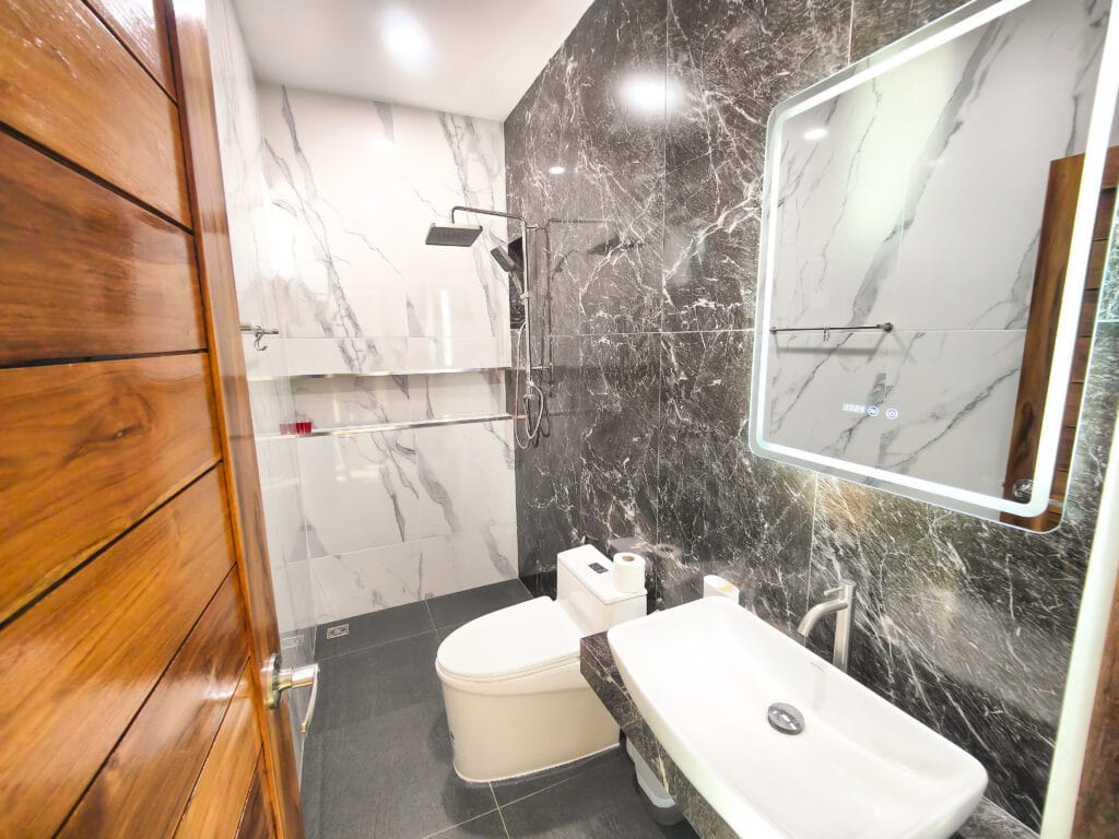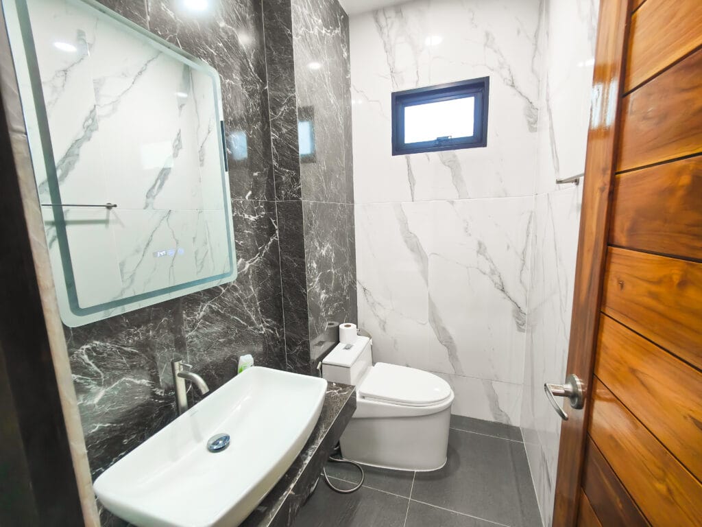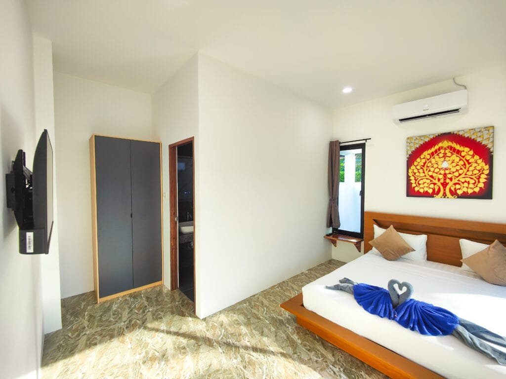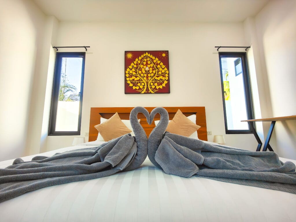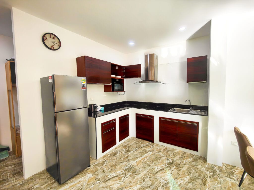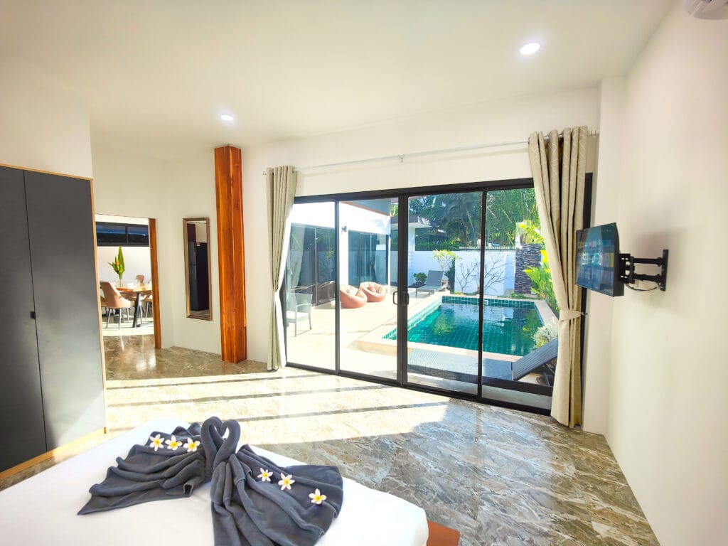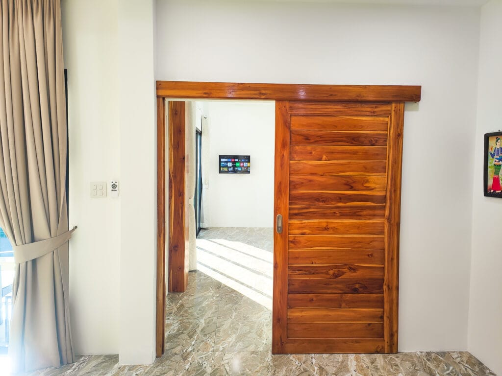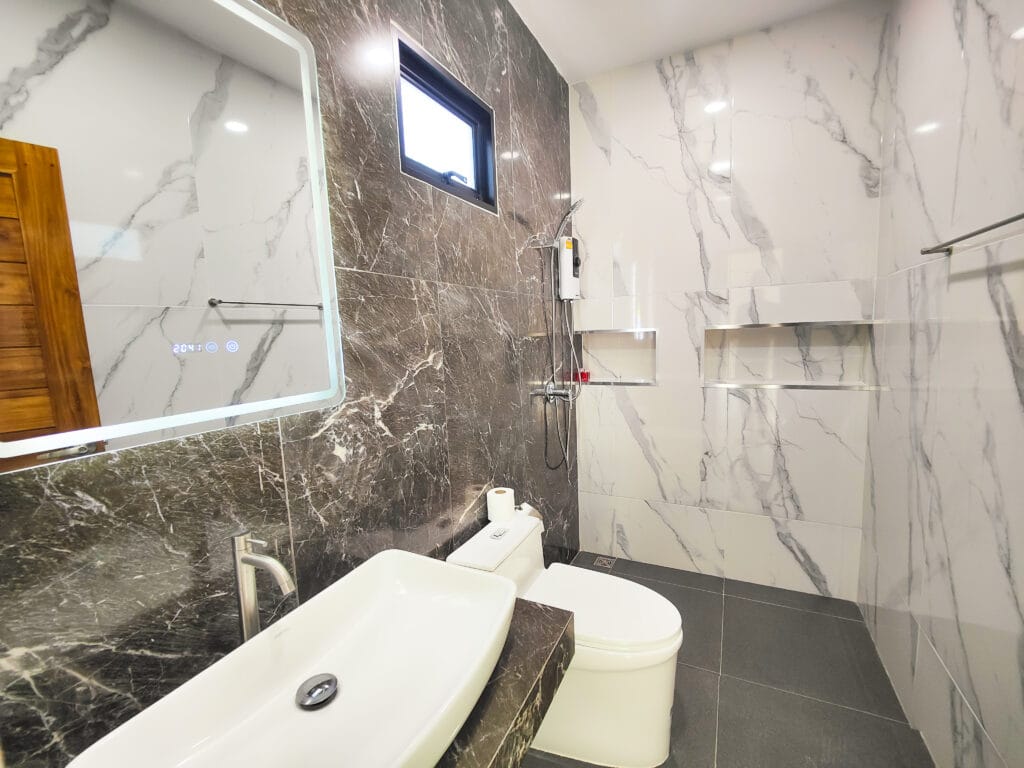 Moderní vila v srdci Lamai se dvěma ložnicemi a třemi koupelnami (dvě en-suite, jedna pro hosty). Vzdušný obývací pokoj s TV stěnou obloženou kamenným obkladem a LED podsvíceným recesním stropem (tray ceiling) doplňuje kvalitní dřevěný nábytek a teakové postele. Vila nabízí plně vybavenou kuchyň s vyzděnou linkou, výběrovými skříňkami a prostorem pro pračku, oddělenou od hlavní ložnice posuvnými teakovými dveřmi. Kvalitní hliníkové posuvné dveře a stropní ventilátory na dálkové ovládání zvyšují komfort. Parkovací stání propojené s domem zajišťuje pohodlný přístup „suchou nohou“. Zahrada s venkovní sprchou, kamenným obkladem a prostornou terasou s bazénem 6×3 metrů v kombinaci s moderním designem a dřevěnými prvky vytváří luxusní a pohodlnou atmosféru. Díky kvalitnímu provedení s nádecherm luxusu a atraktivní lokalitě je tato nemovitost vysoce lukrativní.